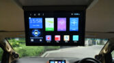 ภายในห้องโดยสารสีเบจสภาพดี จอ Android ขนาดใหญ่ TV เพดาน ดูหนัง ฟังเพลง เชื่อมต่อ Bluetooth Internet มีเพิ่มชุดลำโพงสร้างเวทีเสียงด้านหน้ารถ ฟังเพราะมากเลยครับ